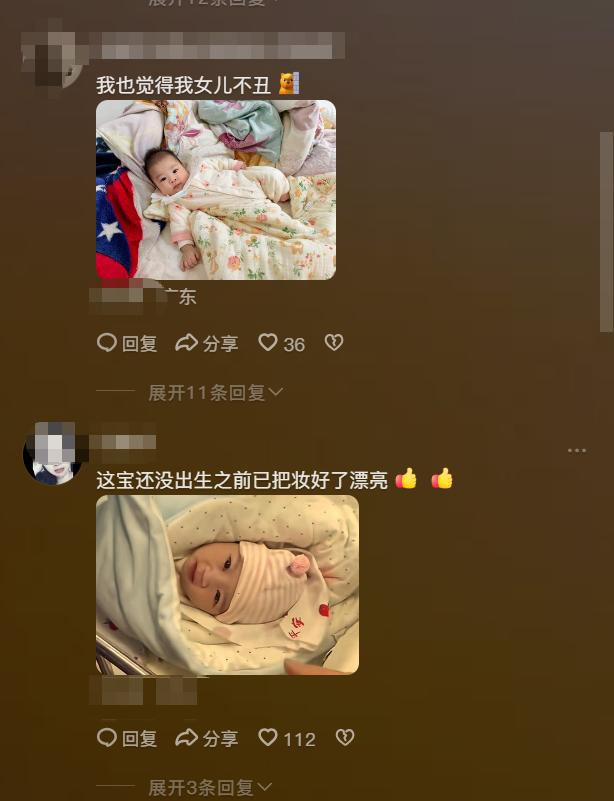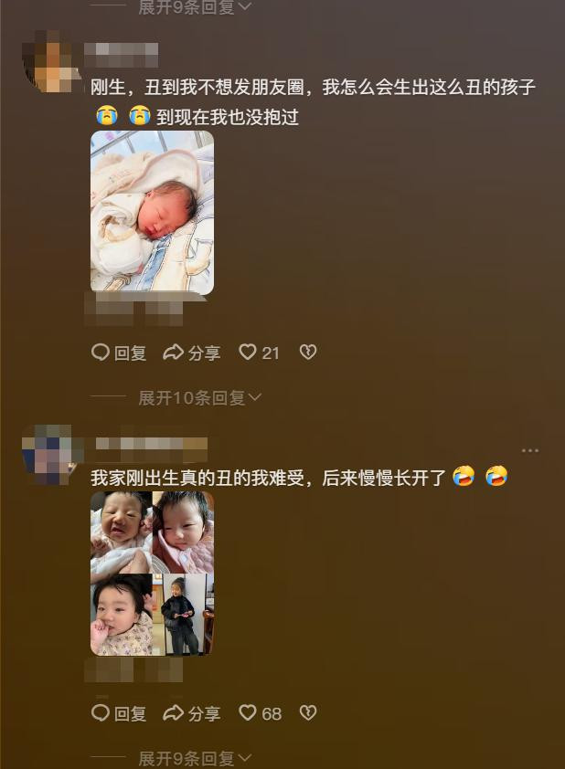 评论区里面很多网友都晒出了自己孩子的相片,很多孩子在刚出生的时候样子确实不太好看,甚至有妈妈说自己孩子刚出生的时候,自己都特别的嫌弃,压根就不想抱他,因为没有想到自己能生出这么丑的孩子。